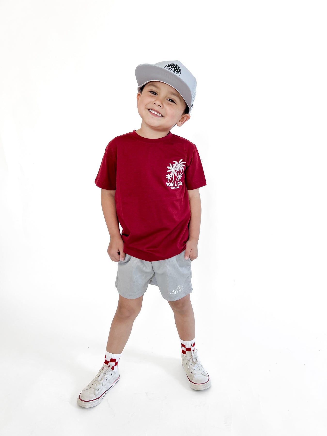 Introducing the latest addition to your child's wardrobe! This maroon t-shirt is an ideal choice for a day at the beach. Crafted from soft, durable fabric, this tee ensures your little one stays comfortable while playing in the sand, building castles, or simply soaking up the sun. The vibrant design and beachy theme make it a fun and stylish piece that your child will love to wear again and again, providing the perfect blend of comfort and seaside flair.