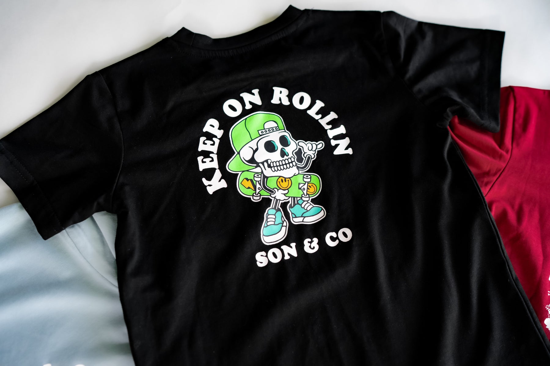 Pair this tee with your favorite jeans or shorts, and let the world know you're ready to roll with style and confidence. Get your Keep On Rollin' Tee today and make a statement that’s as bold and fearless as your little one is!
